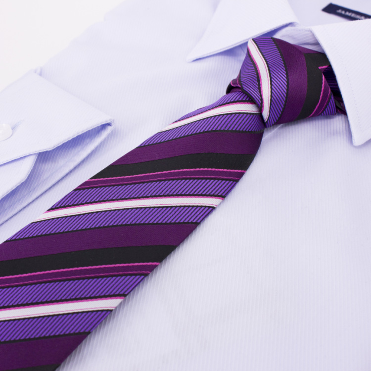 其次,领带的三种款式:领带的款式主要在领带的宽度上,常用的领带宽度多为8—9厘米,最宽的可达12厘米,最窄的仅有5-7厘米。领带基本上分为三种,可以根据自己的爱好来选择。